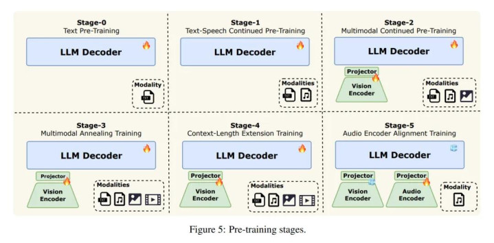 训练上,模型采用渐进式早期多模融合训练,先从纯文本预训练出发,依次引入音频和视觉数据,再逐步建立跨模态语义对齐与时序建模能力。