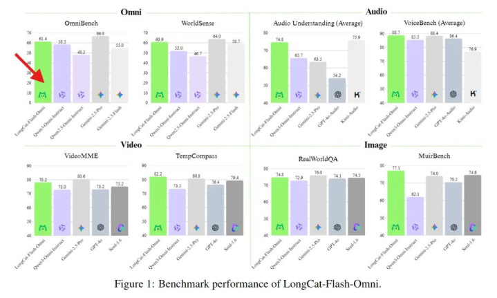 正是凭借这种全模态覆盖+端到端架构+大参数量高效推理,LongCat-Flash-Omni达成了平衡:既有覆盖文本、图像、视频、语音的全模态能力,又能在开源体系下达到与闭源模型相媲美的实时交互体验,初步解决了参数大但推理慢的行业痛点。