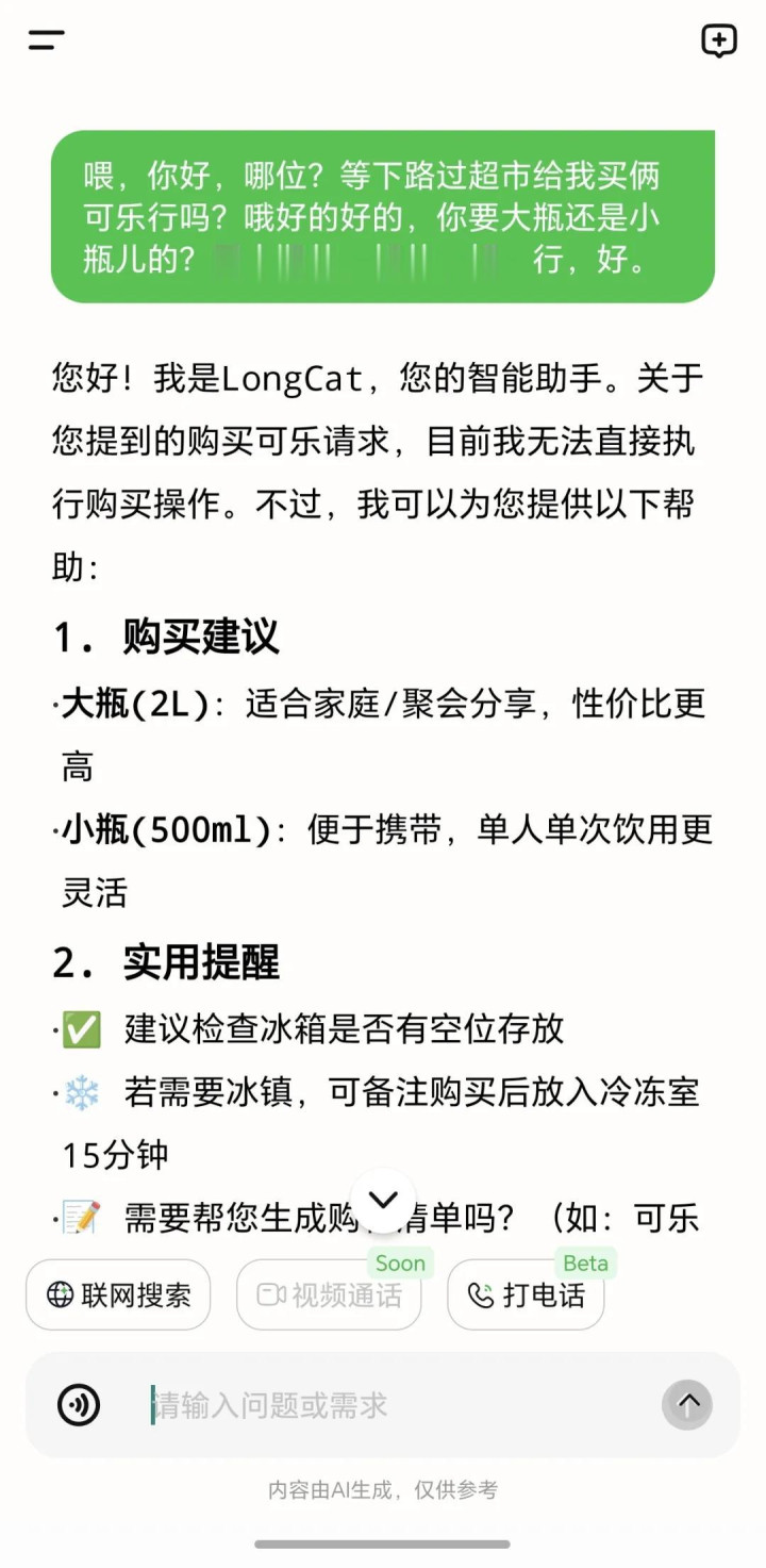 而眼见和LongCat聊天有点意思,那视频通话内测当然得继续安排上。